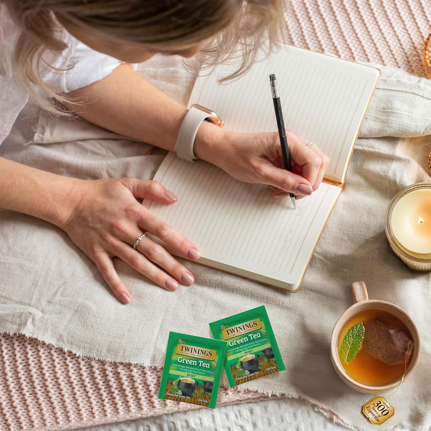 Twinings Green Tea with Mint Individually Wrapped Bags, 20 Count (Pack of 1), Invigorating Aroma, Caffeinated, Enjoy Hot or Iced, 20 Teabags