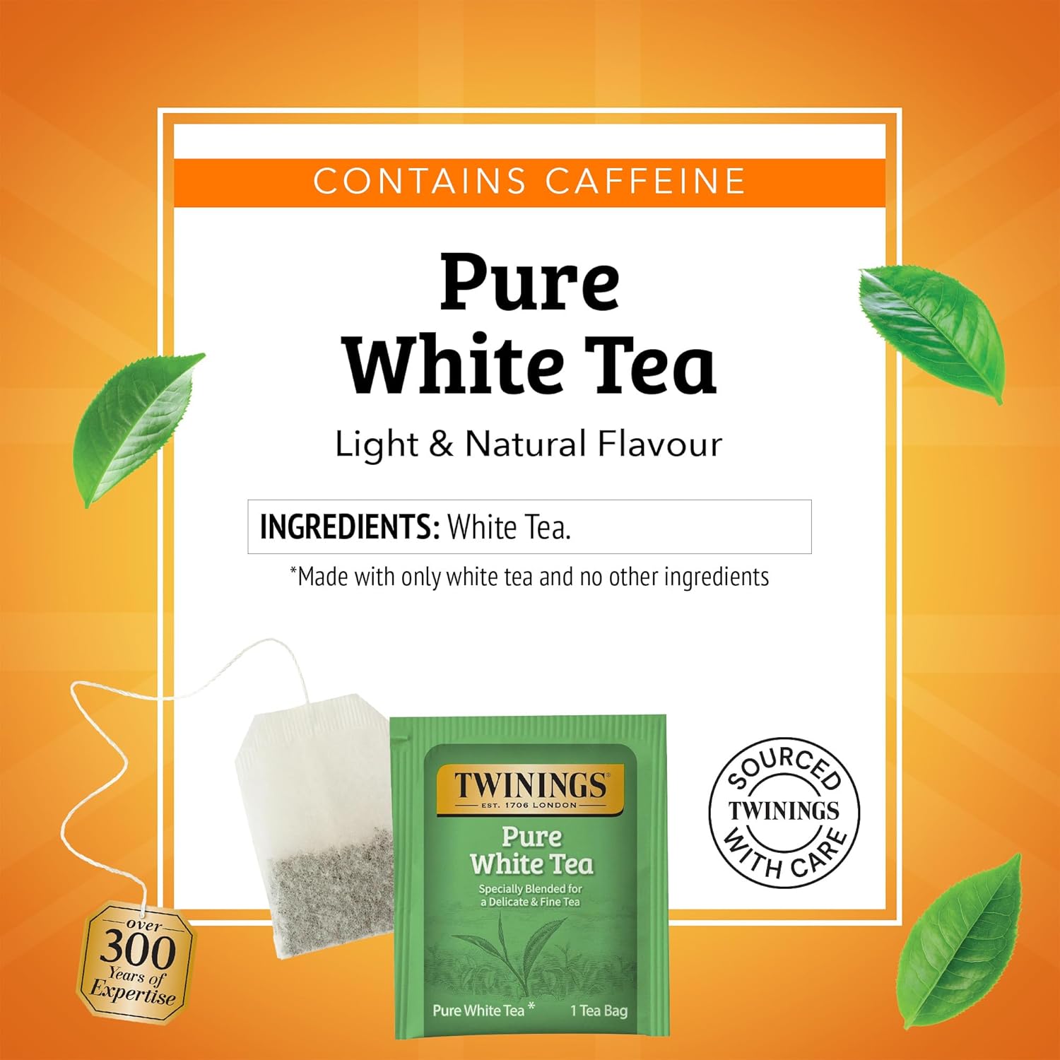 Twinings Pure White Tea Individually Wrapped Bags, 20 Count (Pack of 1), Light & Fresh, Caffeinated, Enjoy Hot or Iced, 20 Teabags