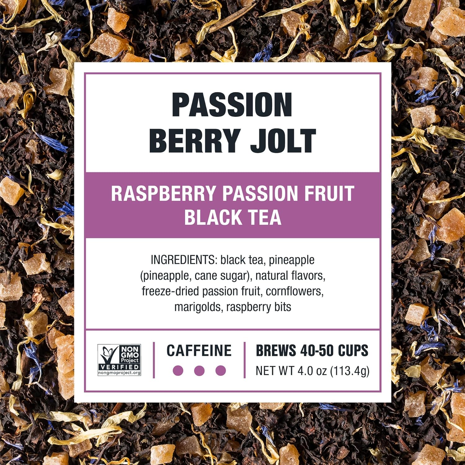 Tiesta Tea - Passion Berry Jolt, Loose Leaf, Raspberry Passion Fruit Black Tea, Premium Caffeinated Blend, Make Hot or Iced & Brews Up to 50 Cups, 4oz Refillable Tin