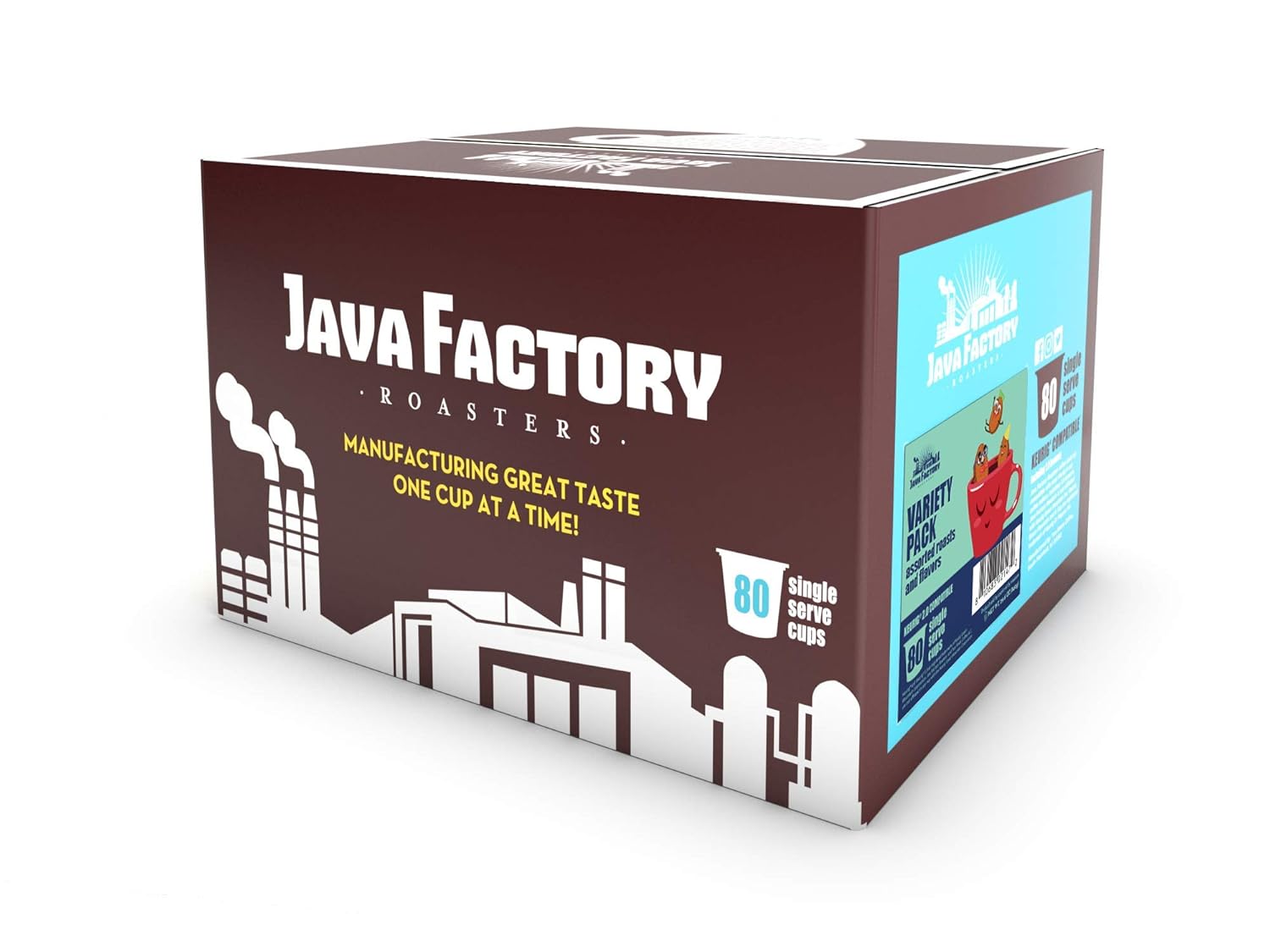 - This variety packs allow you to enjoy all the fun coffees Java Factory has to offer without buying individual boxes of each flavor. Java Factory coffee is made from 100% fresh roasted Arabica coffee beans with a new filter system to deliver more taste per cup.