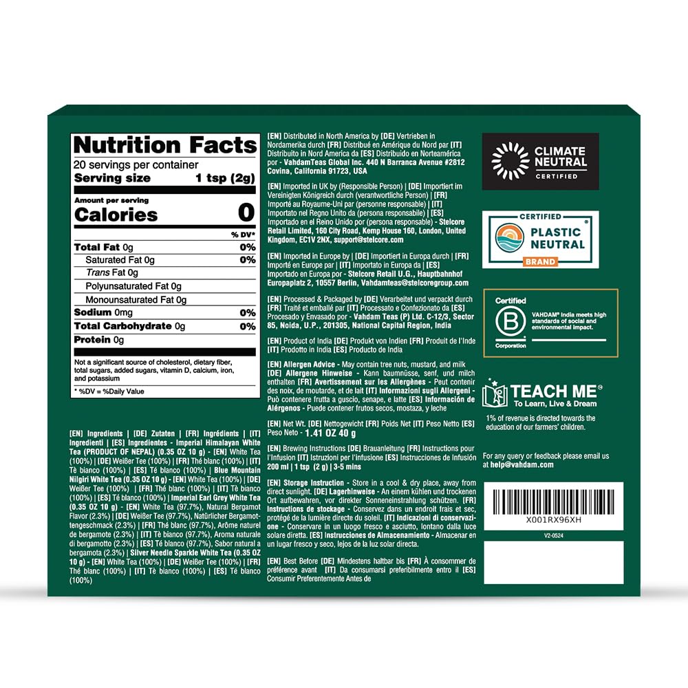 - EXCLUSIVE LOOSE LEAF WHITE TEA - Gift your beloved this exquisite 5 White Tea variety pack containing majestic Imperial Himalayan, refreshing Blue Mountain Nilgiri, regal Imperial Earl Grey sourced from the finest tea estates & spice gardens, picked & vacuum sealed for freshness.