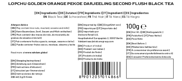 VAHDAM, Second Lopchu Golden Orange Pekoe Black Tea| 40+ cups, 3.53 oz | Pure 100% Unblended Darjeeling Black Tea Loose Leaf | Single Estate Tea
