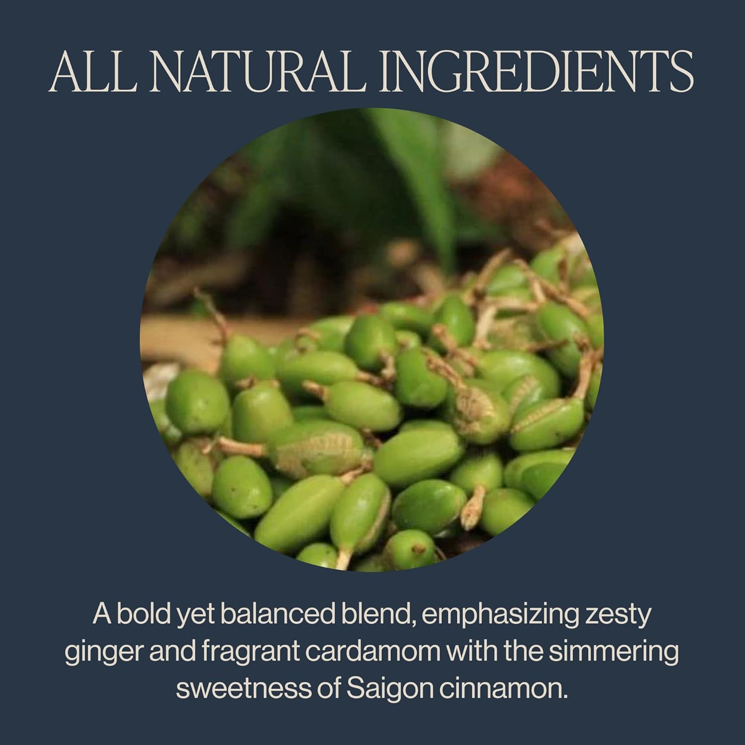 - Simple Ingredients: Organic black tea, organic ginger root, organic cinnamon, organic cardamom, organic black pepper, organic cloves