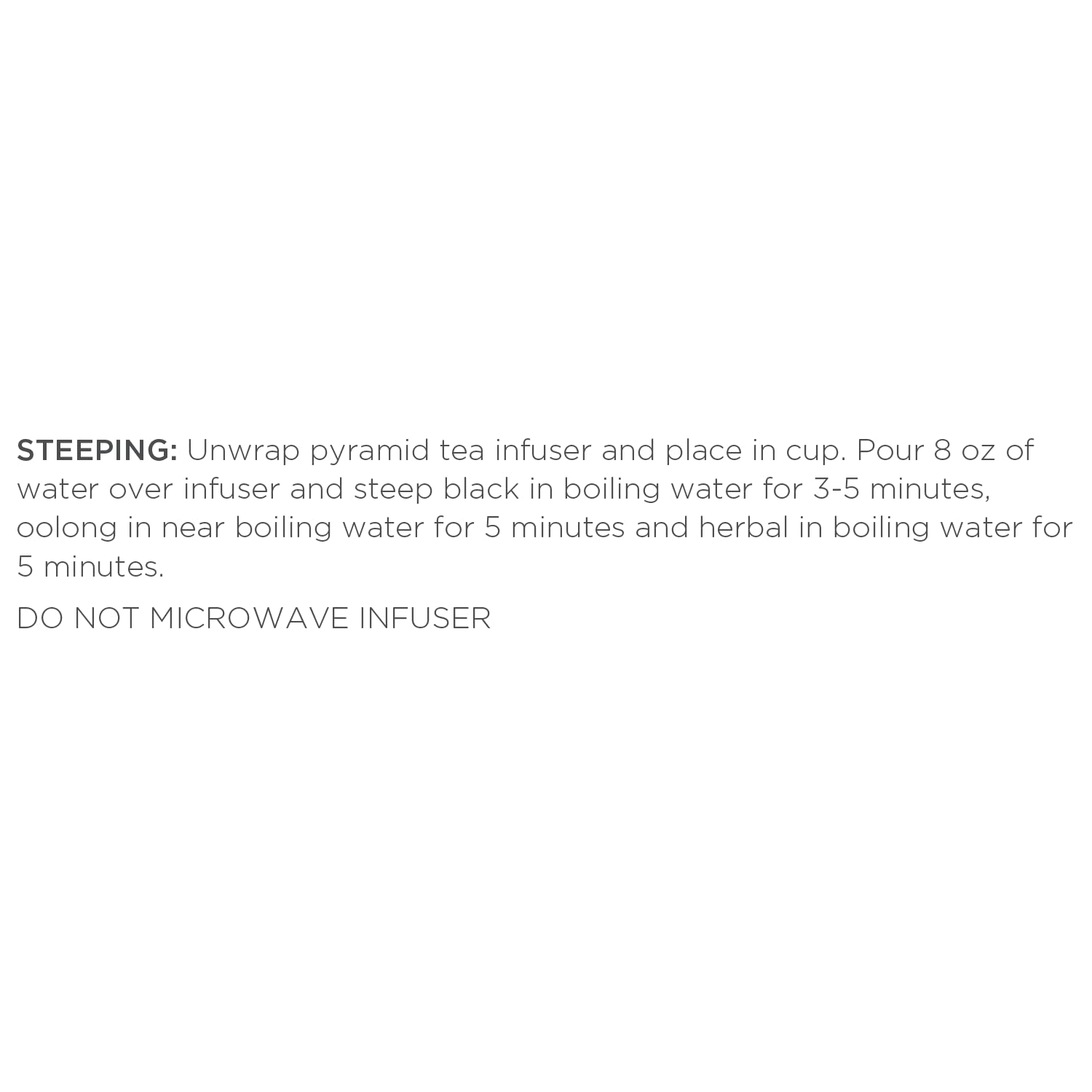 - TO STEEP TEA, unwrap the Pyramid Infuser, steep in hot water, and reveal the exquisite nature of the whole leaf teas. Allows the tea leaves to fully unfurl in the water, resulting in a most flavorful cup of tea. Note: Do not microwave.