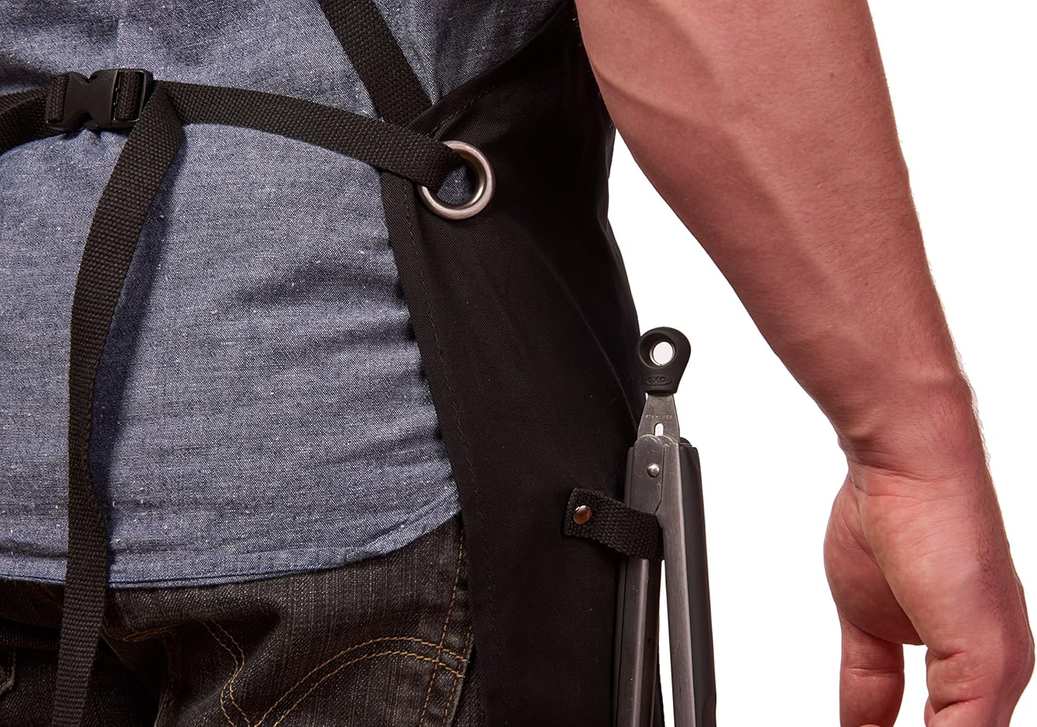 - Tool Pockets - This apron with pockets comes with a chest pocket to access your phone or pens easily, a kangaroo-style pocket to keep your tools within reach, and a right hip loop to hang your towel