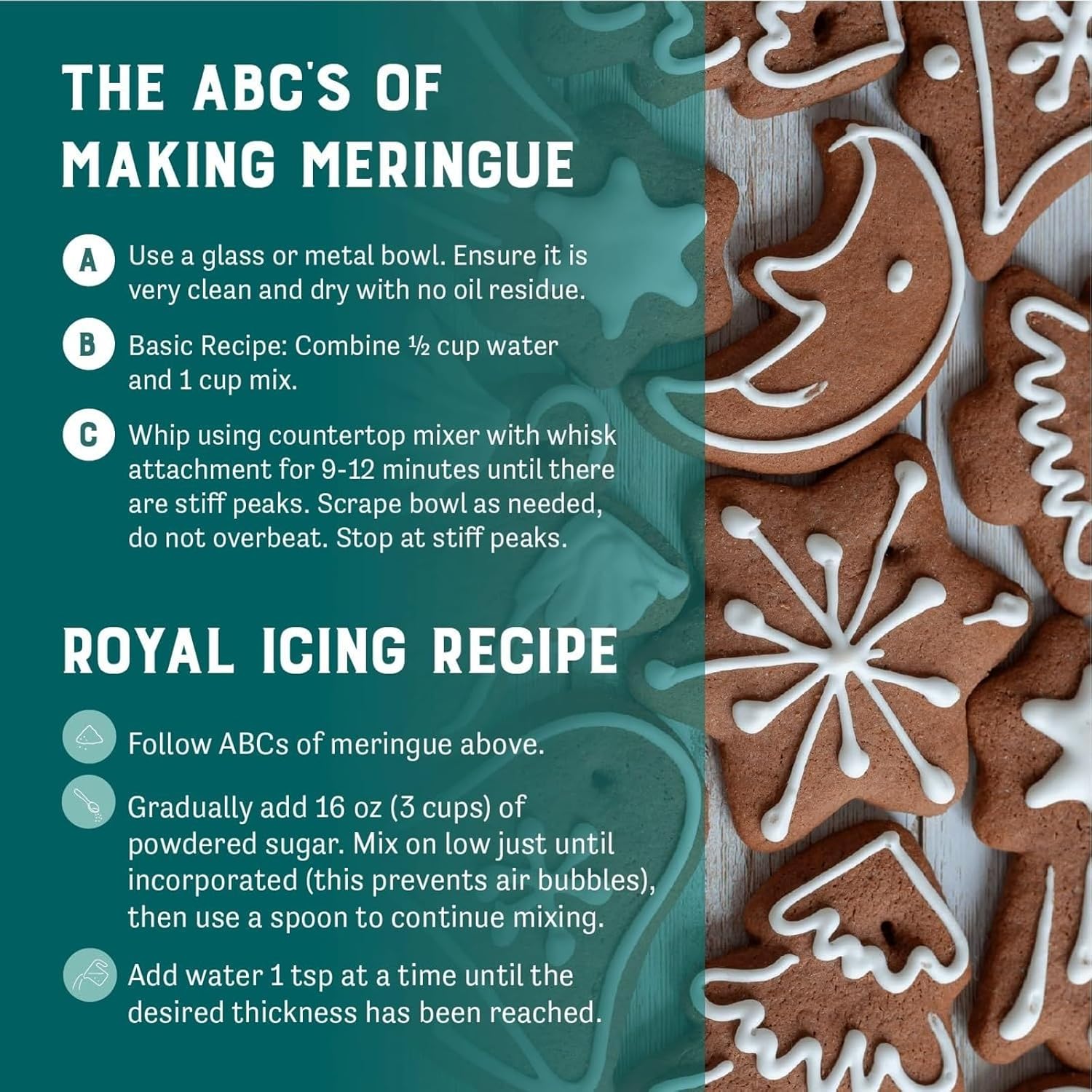 - Meringue Made Easy: Easily create your favorite meringue cookies, pies, and frosting by simply adding water. For royal icing, incorporate powdered sugar after achieving stiff peaks. Our superfine sugar is included, making it the ideal royal icing mix for cookie decorating supplies