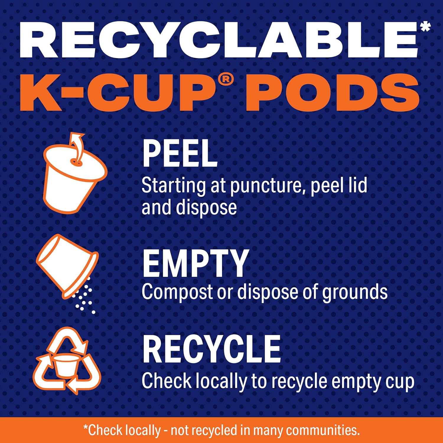 - K-Cup pods are recyclable* — simply peel the lid, empty the grounds from the cup and recycle the cup *Check locally – Not recycled in many communities