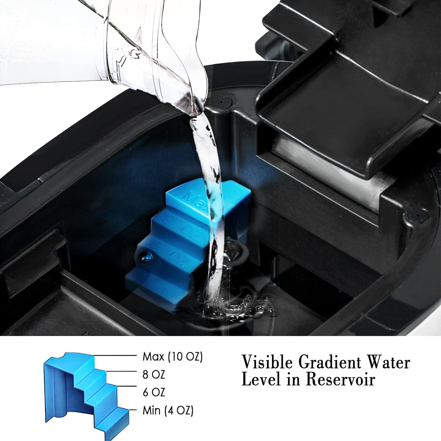 - LARGE MOUTH RESERVOIR WITH GRADIENT SCALE: Turn right to lock filter basket, water can be stay at upper reservoir when add, 4-10oz amount to be controlled easily. After close lid,water will flow into internal tank through filter which can advoid powder or dust, ensure fresh coffee for each cup