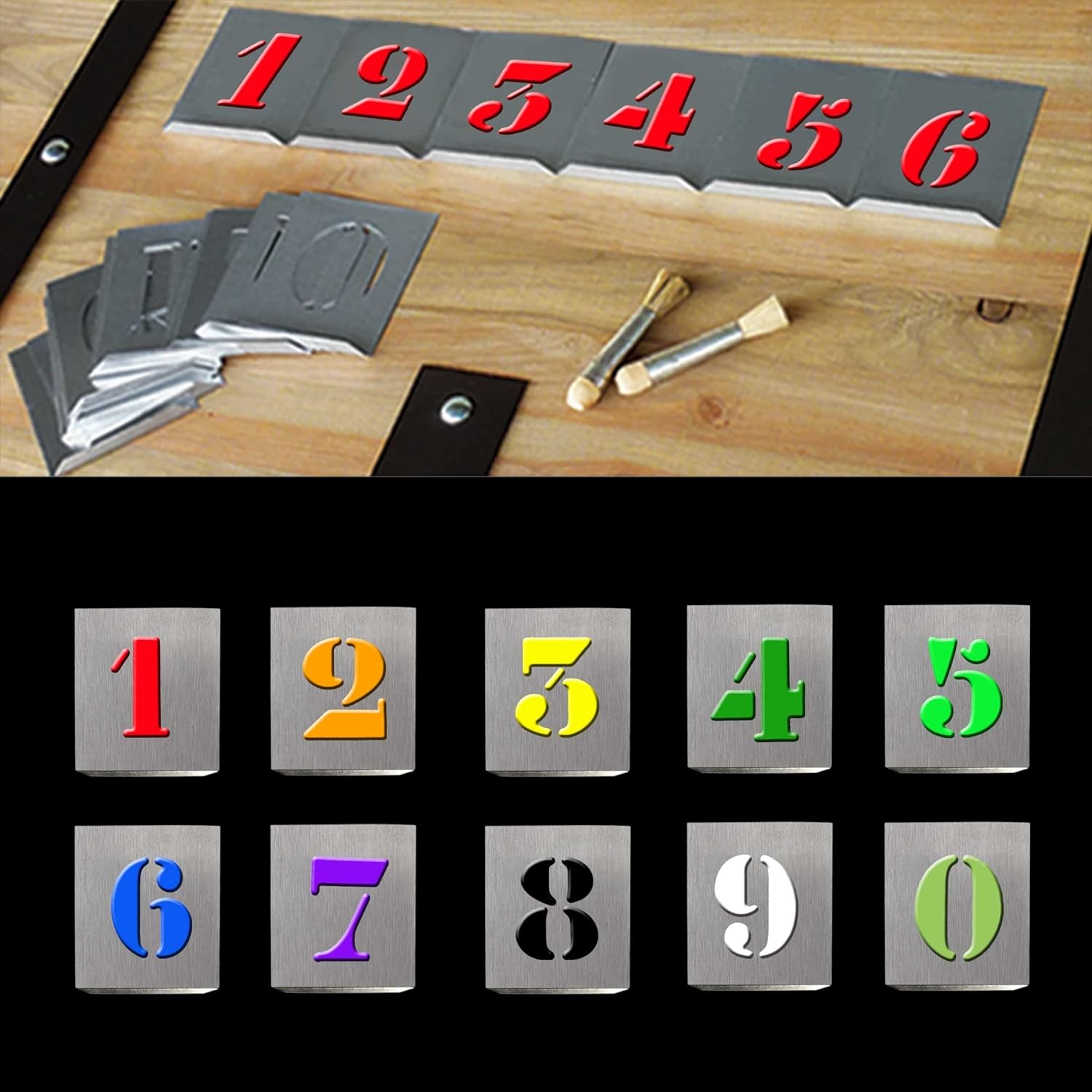HAUTMEC Vintage Aluminum Numbers Stencils, 0 to 9 Aluminum Stencils & Holder, 2"(50mm) Numbers, Shop Stencil, Advertising Stencilling, Craft-Printing, Reusable HD00002