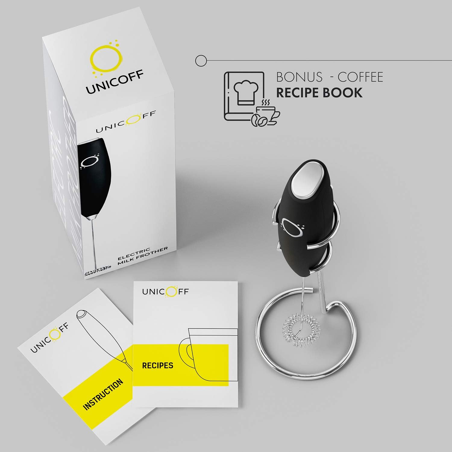 - AT UNICOFF, WE’RE COFFEE FANATICS – and we’re passionate about crafting professional-level coffee bar accessories to MAKE BEVERAGE MAGIC in your kitchen. We listen closely to your FEEDBACK and work to improve our COFFEE BLENDER kitchen gadgets in any way we can. If you aren’t thrilled with your drink mixer handheld, our team is STANDING BY to make it right