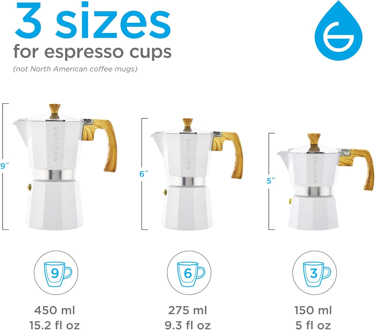 GROSCHE Milano Moka Stovetop Espresso Coffee Maker (9 Cup / 450 ml, White)