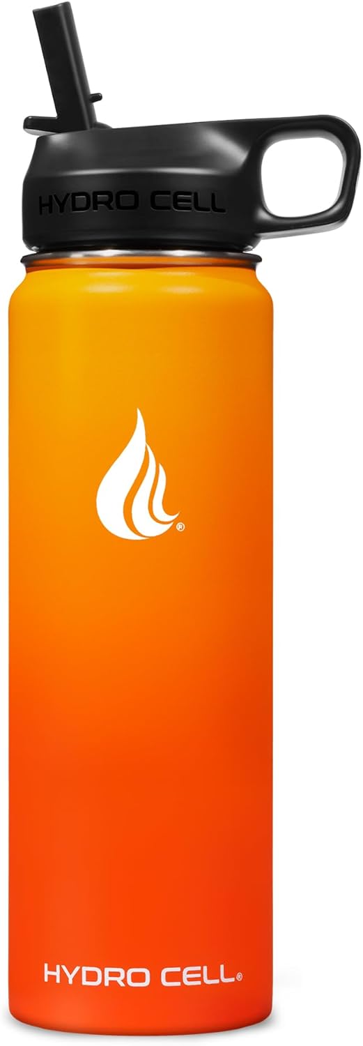 HYDRO CELL Stainless Steel Insulated Water Bottle with Straw - For Cold & Hot Drinks - Metal Vacuum Flask with Screw Cap and Modern Leakproof Sport Thermos for Adults (Red/Orange 24oz)