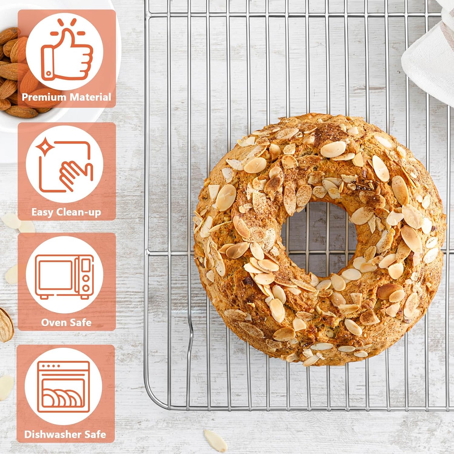 - 【EXQUISITE CRAFT】These cooking racks have smooth surface and edge, With no rough spot, Give a comfortable and secure grip, Protect your hand roundly, Mirror finished surface for releasing food easily, Easy clean by hand and dishwasher proof