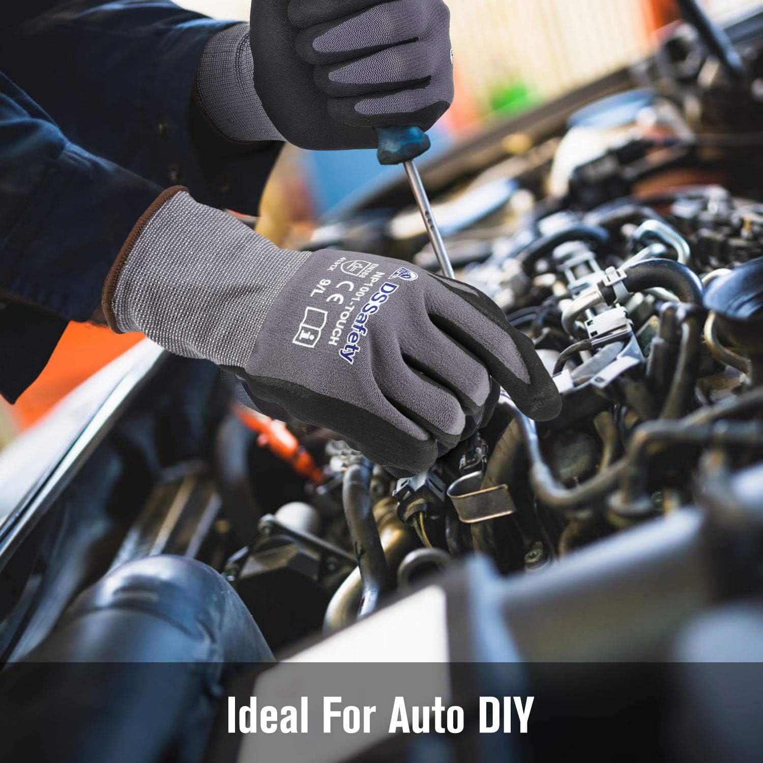 - -NYLON KNIT & HIGH PERFORMANCE: With Nylon Knit wrist, NP1001 working gloves help to prevent dust and debris from entering the glove. Ultra-fine nylon fiber provides superior comfort. DS Safety work gloves is also CE Approved, meet ANSI Standard. 30% thinner than most foam nitrile gloves on the market but has twice mechanical performance than them;