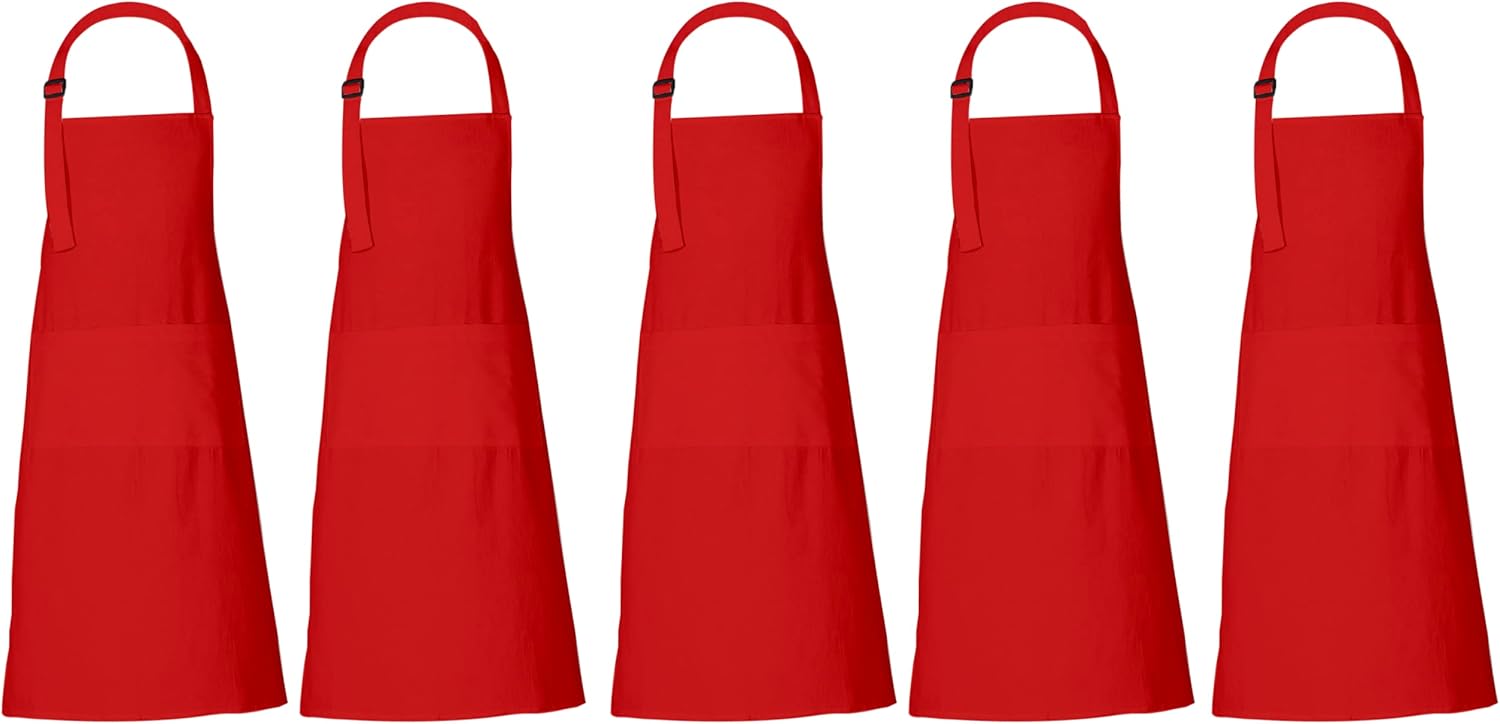 - Premium Quality: Crafted from 100% cotton, Red set of 5 apron offers exceptional breathability and comfort for extended wear, ensuring you stay cool and dry even during long hours of use.