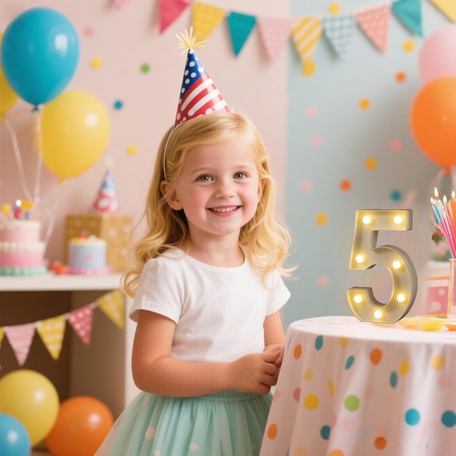 Foaky Decorative Led Marquee Light Up Number, Marquee Light Up Number Sign for Night Light Wedding Birthday Party Christmas Home Bar Decoration Number(5)