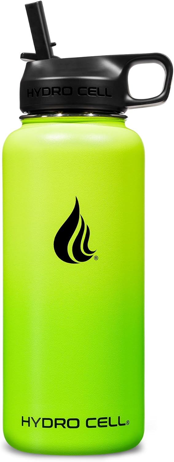 HYDRO CELL Stainless Steel Insulated Water Bottle with Straw - For Cold & Hot Drinks - Metal Vacuum Flask with Screw Cap and Modern Leakproof Sport Thermos for Adults (Neon 32oz)