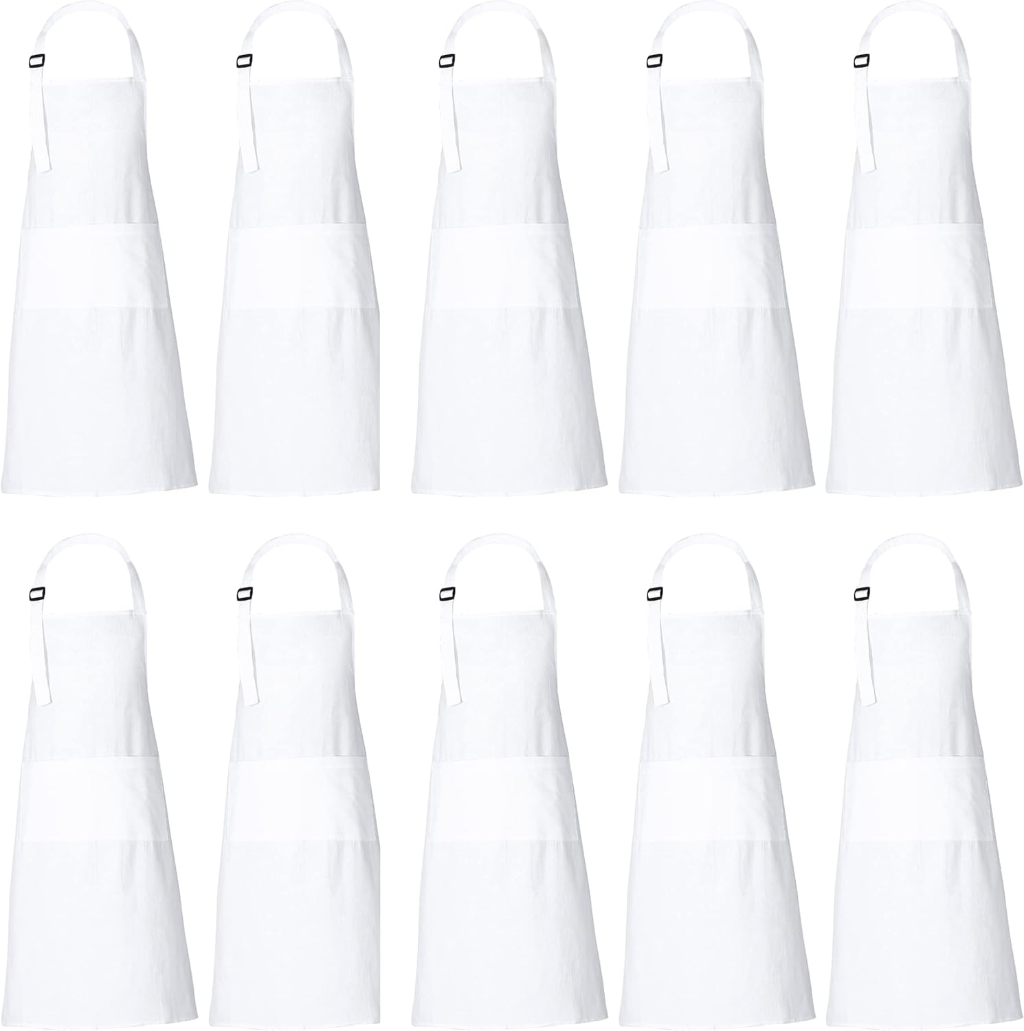 - Premium Quality: Crafted from 100% cotton, White set of 10 apron offers exceptional breathability and comfort for extended wear, ensuring you stay cool and dry even during long hours of use.