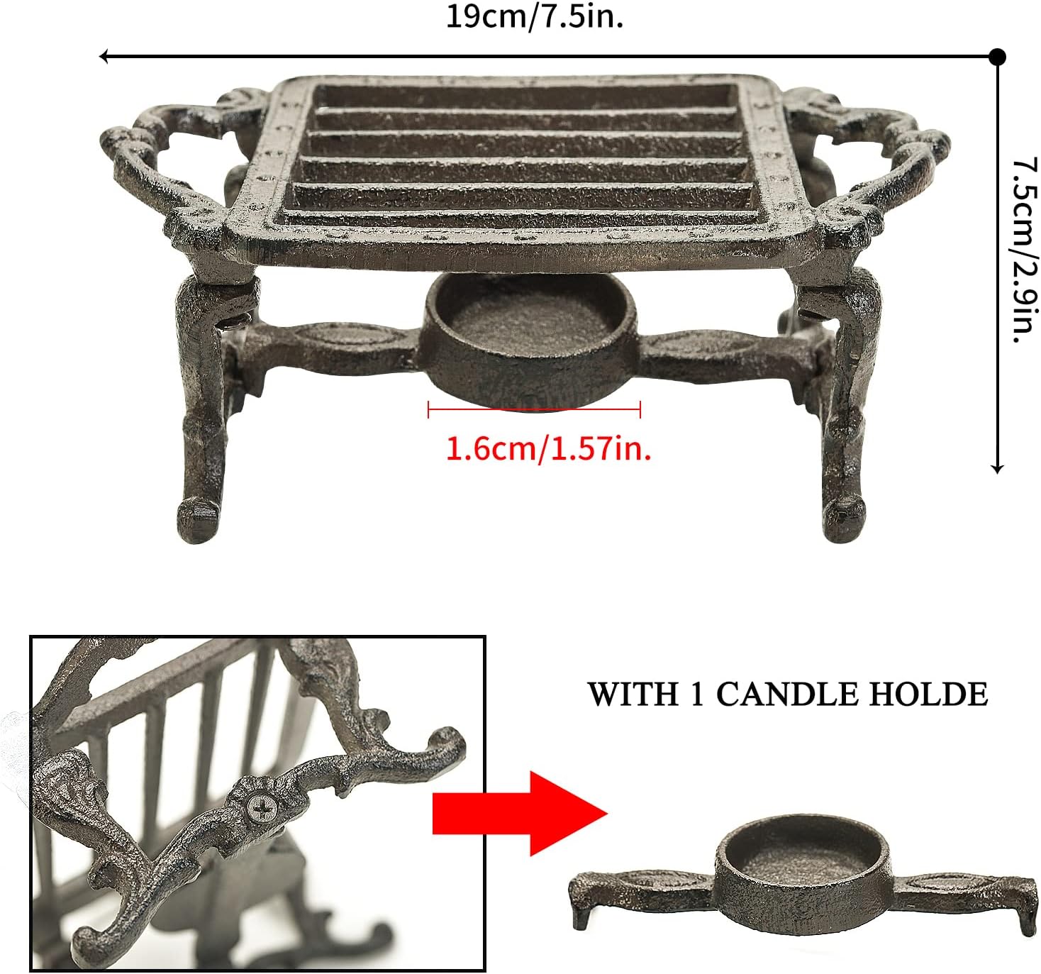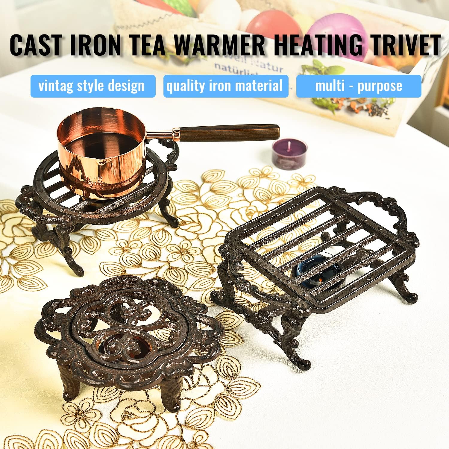 Sungmor Heavy Duty Cast Iron Teapot Dish Warmer Stable Holder for Tealight Stand | Tealight Warmer Decorative Stove for Villa Yard Balcony-Square