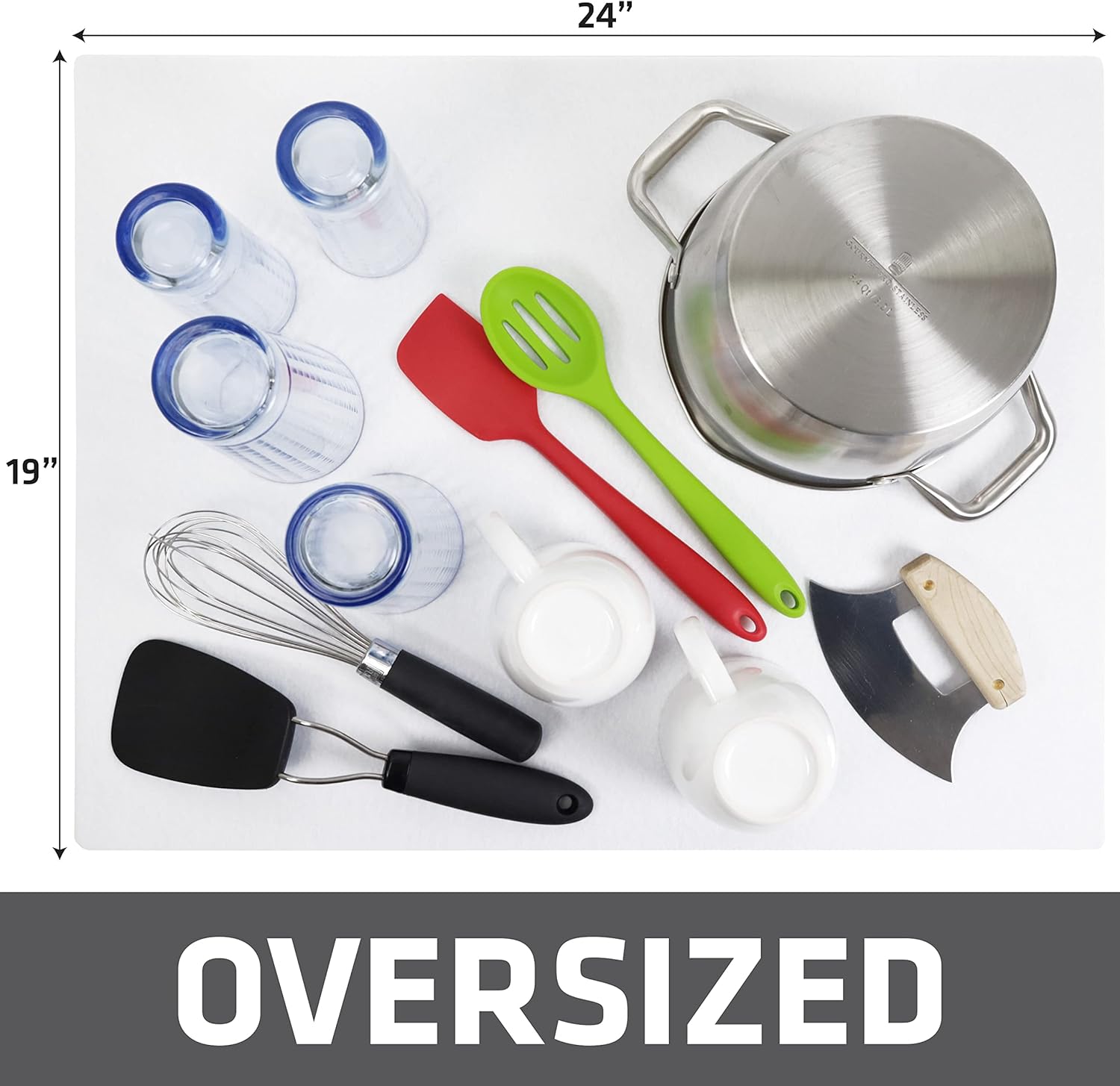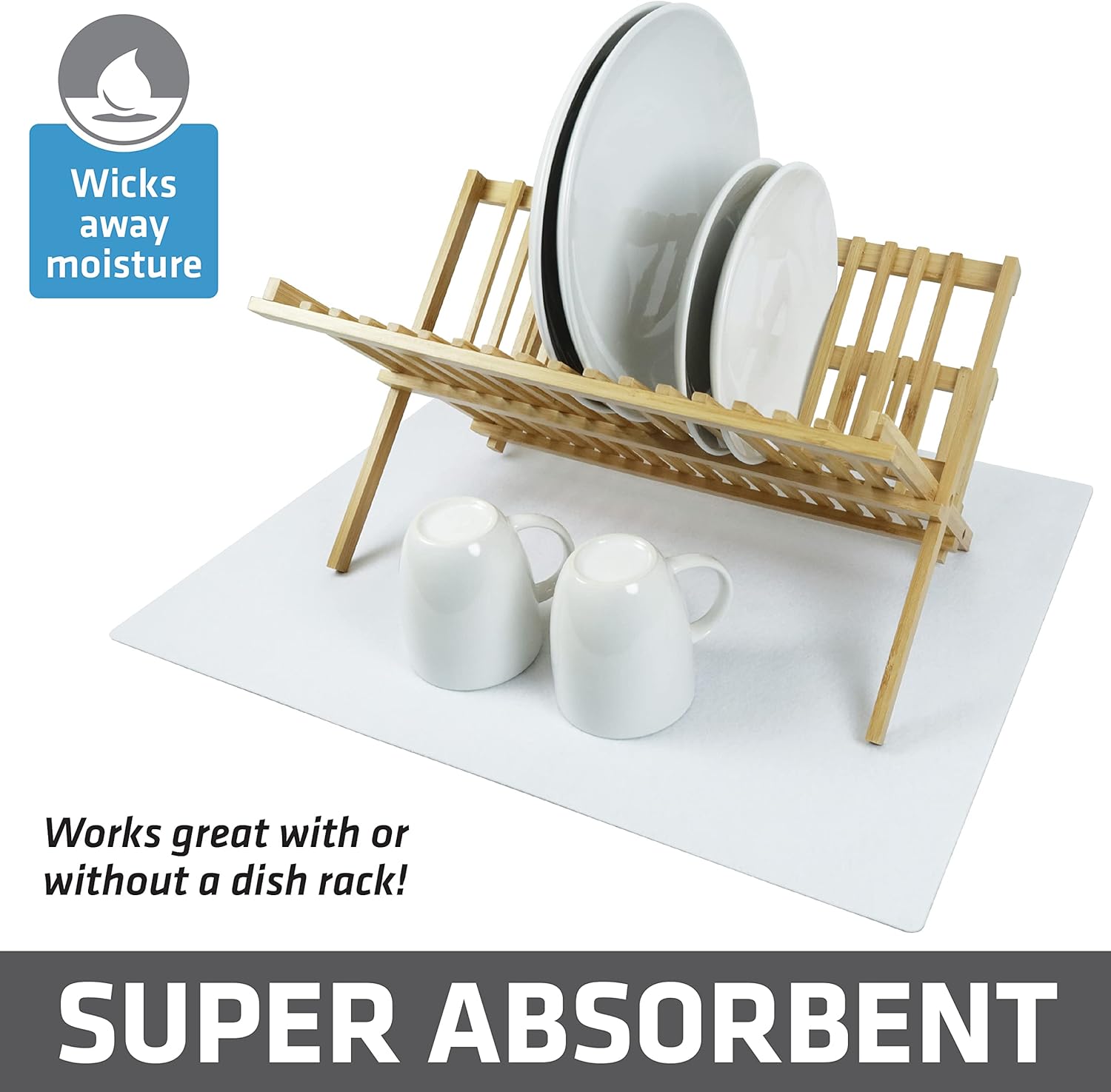 Drymate XL Dish Drying Mat, Oversized (19”x24”), Low-Profile, Super Absorbent, Quick Dry Fabric, Waterproof & Slip-Resistant, for Kitchen Counter, Trimmable, Easy to Clean (USA Made)(White)