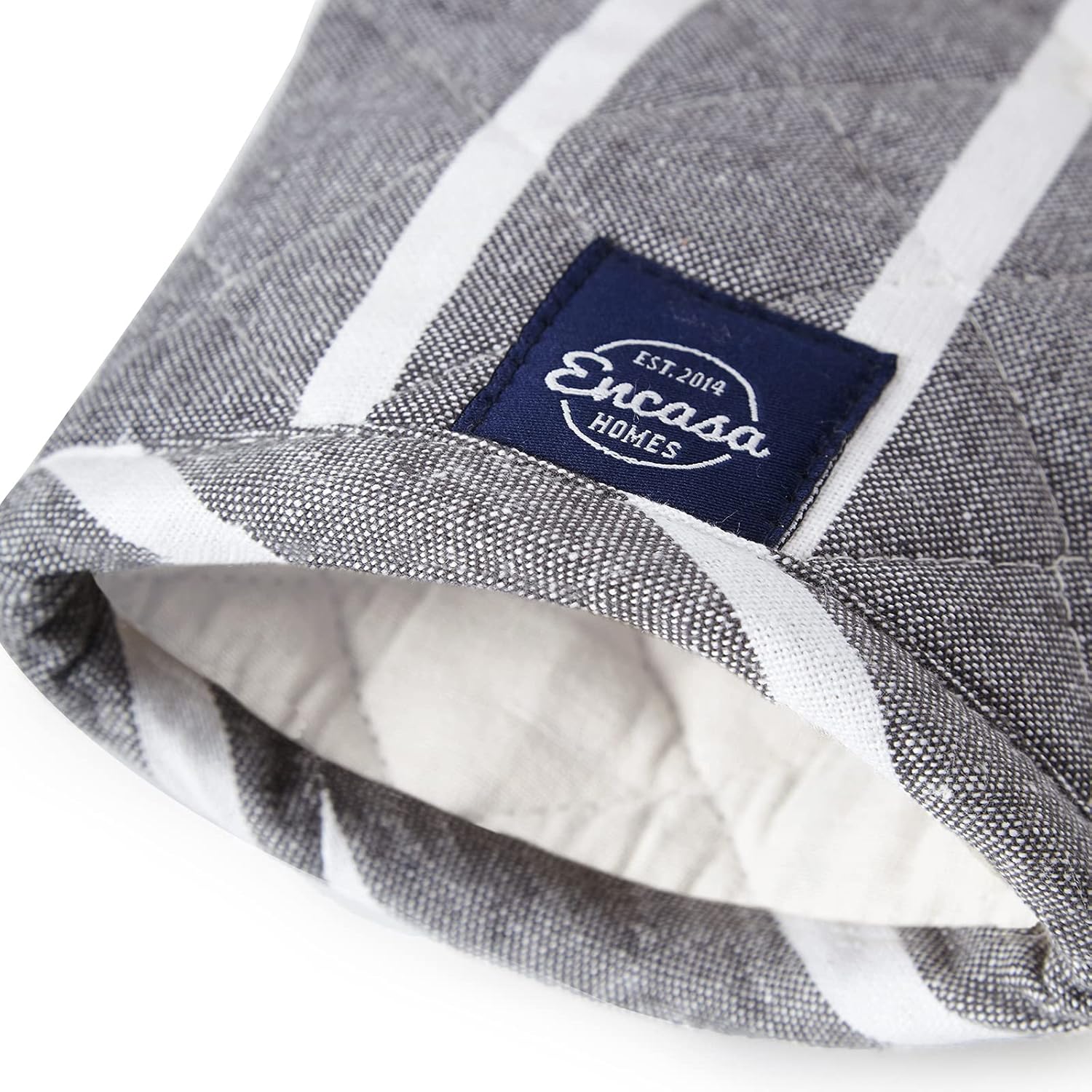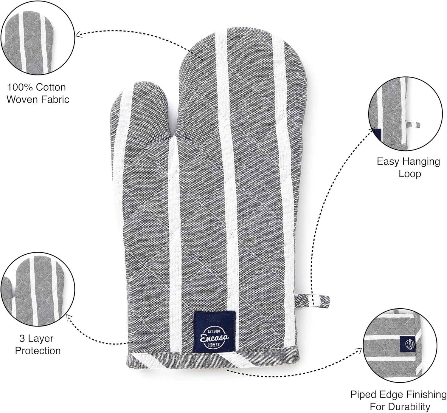 Encasa XO Long 12"x7" Oven Microwave Hand Gloves Mitts (2 pc Set) for Kitchen Cooking & Baking - Heat Resistant, Thick & Safe, Protection of Hands from Hot Utensils - Roma Grey Stripes