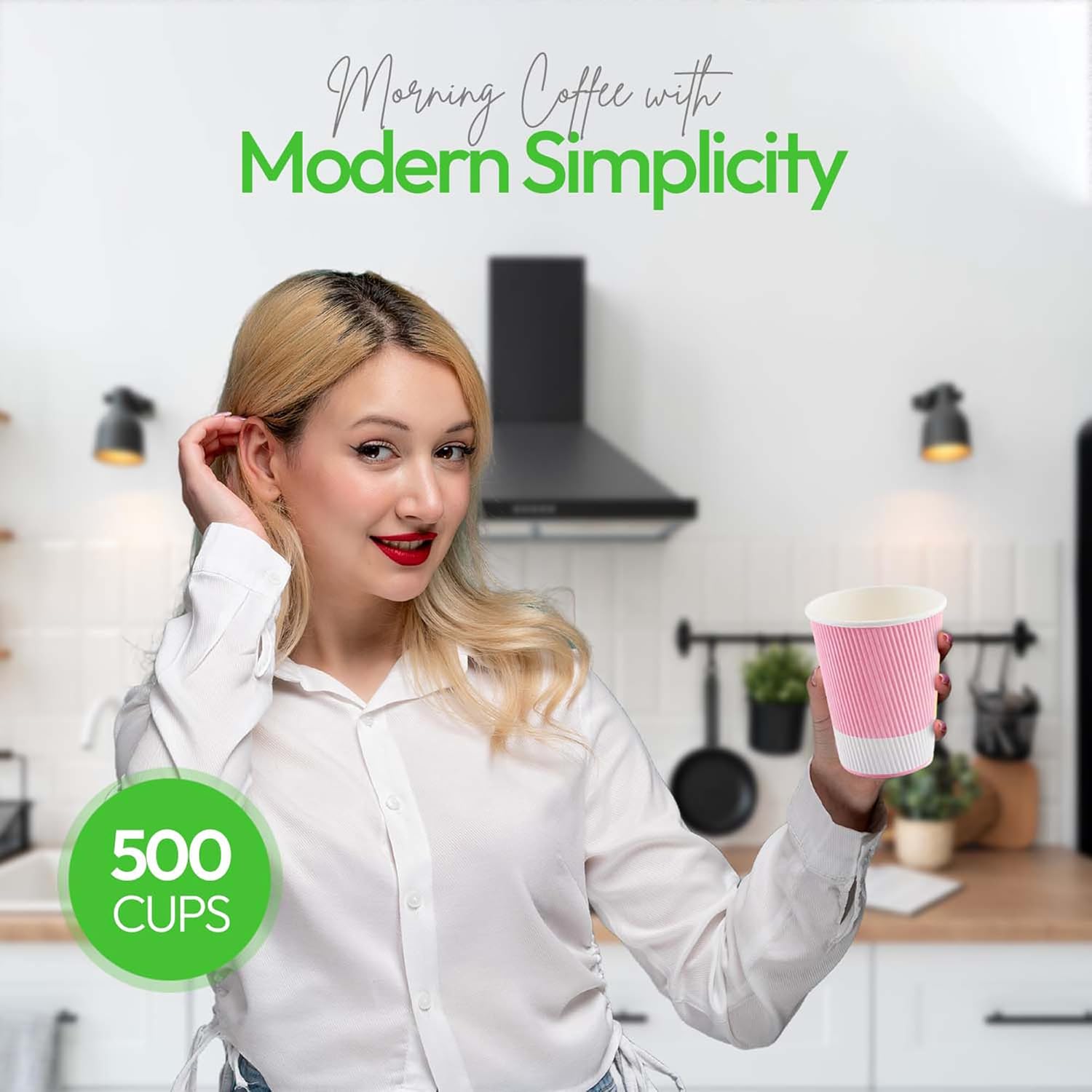 Restaurantware-12 Ounce Disposable Coffee Cups, 500 Ripple Wall Hot Cups For Coffee - Lids Sold Separately, Rolled Rim, Light Pink Paper Insulated Coffee Cups, For Hot Coffee, Tea, And More