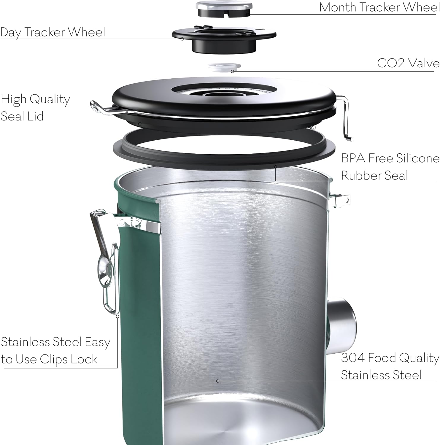 - Keeps Coffee Fresher for Longer – Designed with an airtight seal and premium 304 stainless steel, this coffee canister locks in rich aromas and bold flavors while keeping out moisture, light, and air. Enjoy every sip as fresh as the first!
