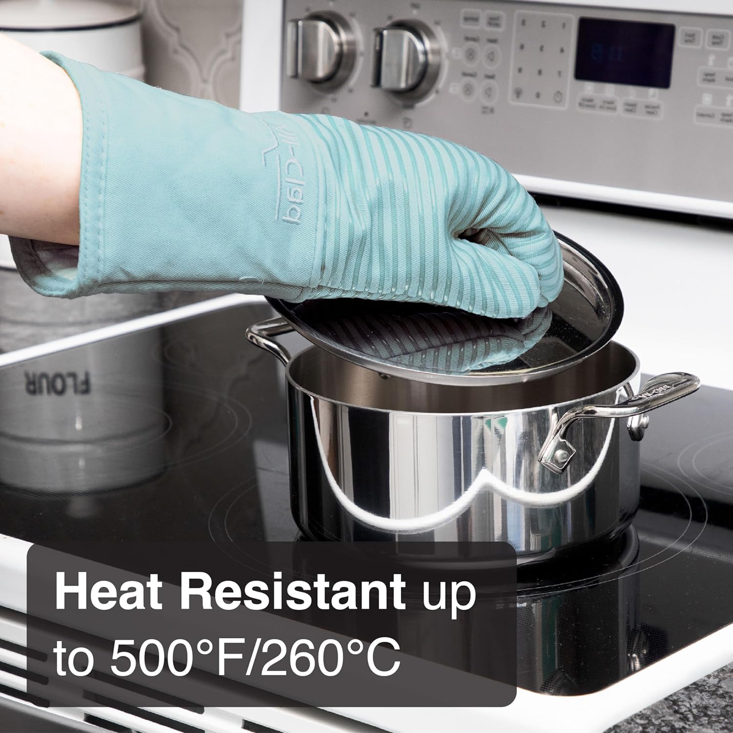 - ATTRACTIVE DESIGN: Whether you're looking for oven gloves or hot pads, All-Clad's entire line of heat resistant kitchen accessories, including beautiful Oven Mitts and Pot Holders, are available in a variety of lively colors to fit your personal taste