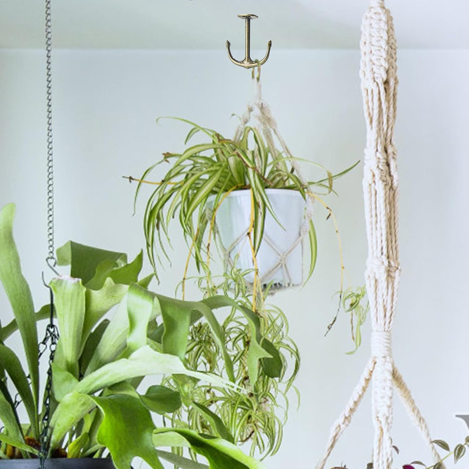 Anchor Shape Zinc Alloy Double Prong Ceiling Hooks, 4-Pack Under Shelf Coat Hooks Hanging Towel Robe Clothes Cap Bathroom Kitchen Cabinet Garage Use (Bronze)