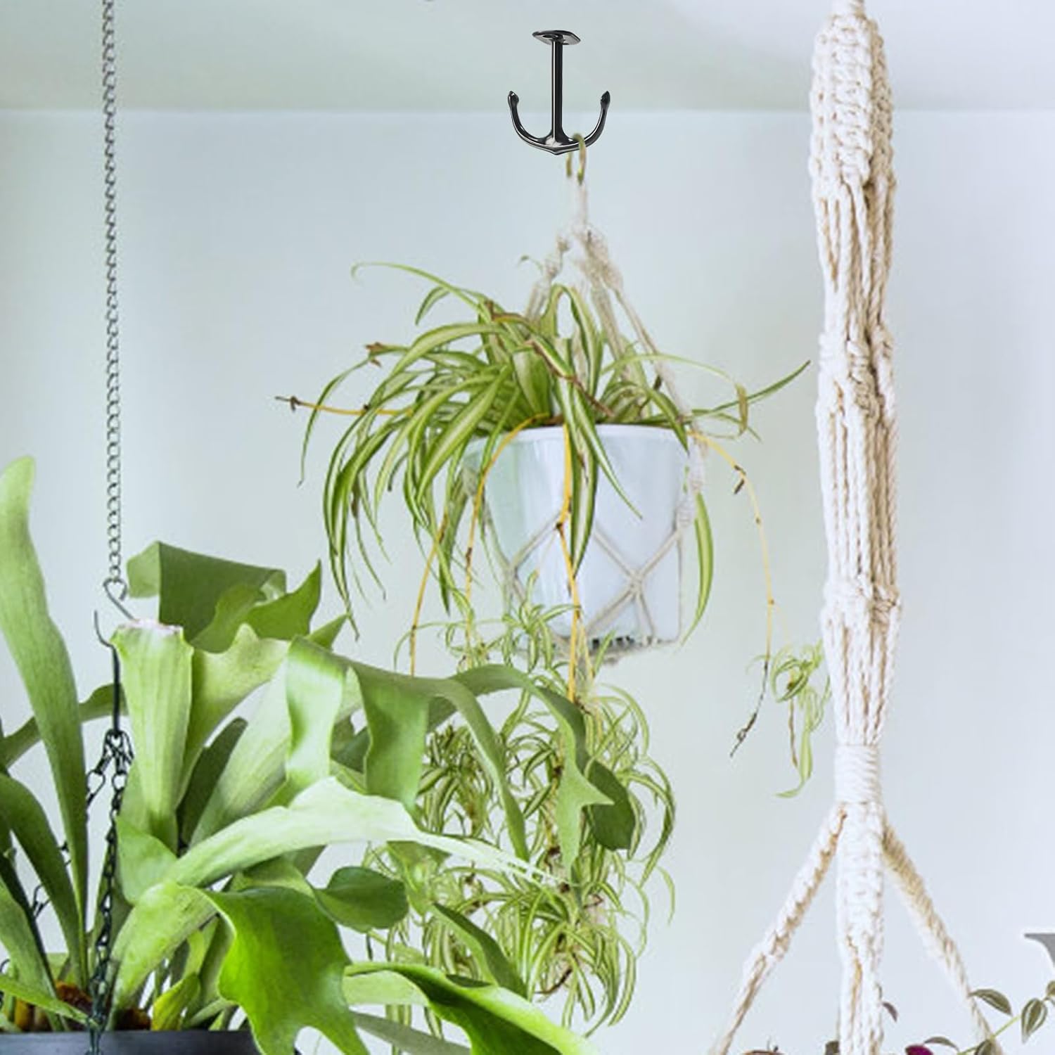 Anchor Shape Zinc Alloy Double Prong Ceiling Hooks, 4-Pack Under Shelf Coat Hooks Hanging Towel Robe Clothes Cap Bathroom Kitchen Cabinet Garage Use (Black)