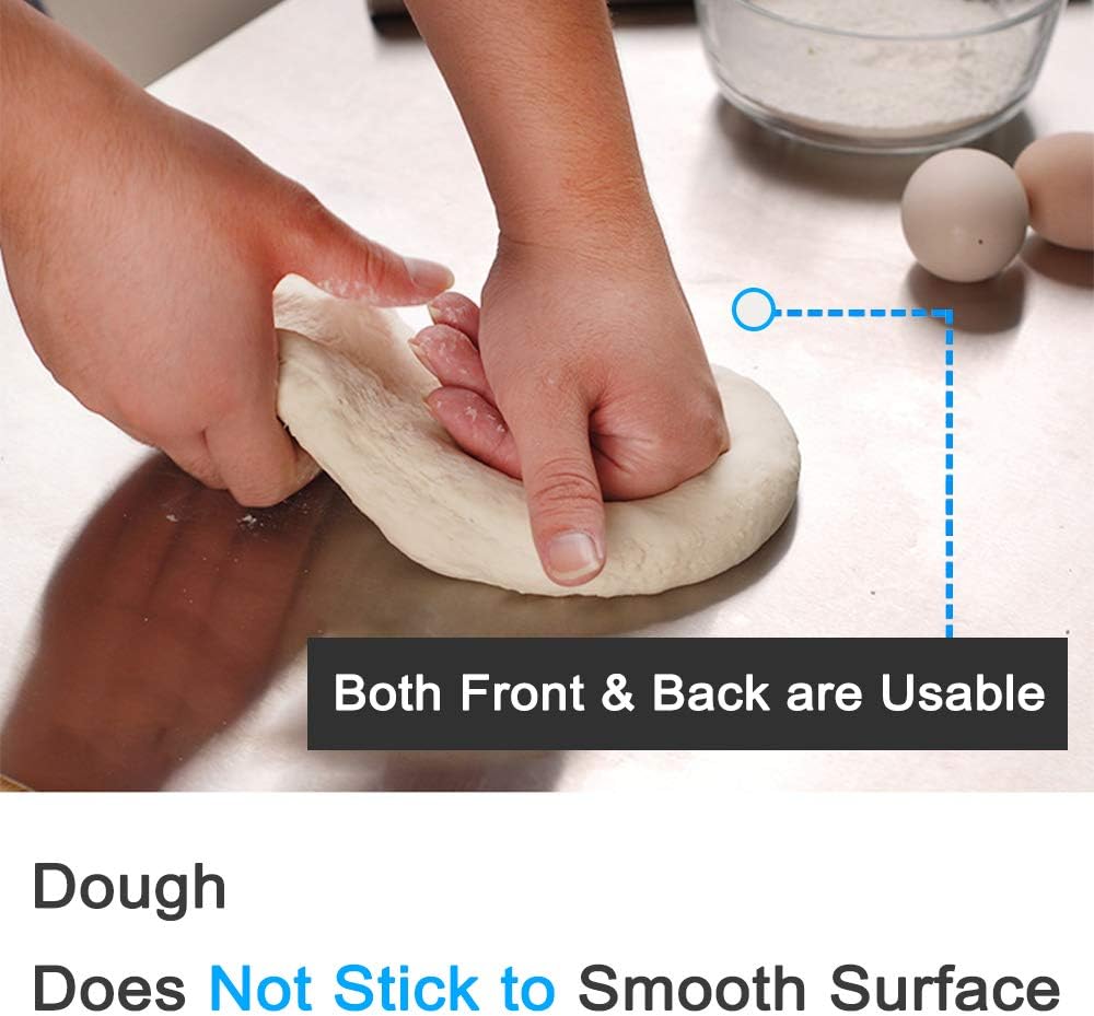 - 【Large Size stainless steel cutting board】The size of 23.6 x 19.7 inches perfectly meets all your cooking and baking needs in the kitchen, giving you more space to prepare exquisite dishes. In addition, it is dishwasher-safe. Debris can be rinsed by water or wiped by the dishrag. You don't need other tools to remove extra dough or other material from it.