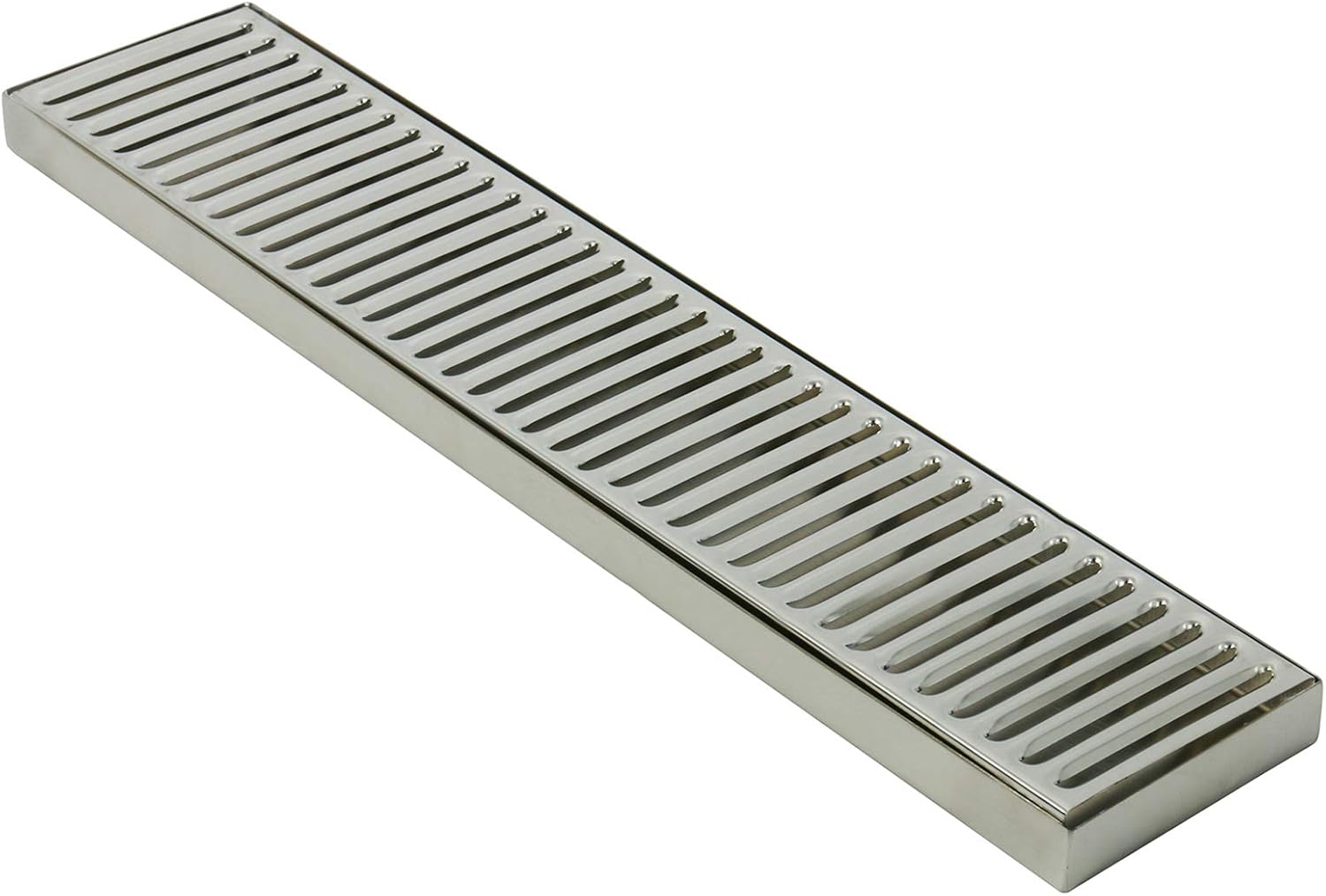 DasMarine 19" Length 4" Width Rectangular Stainless Steel Beer Surface Mount Drip Tray, No Drain, Silver