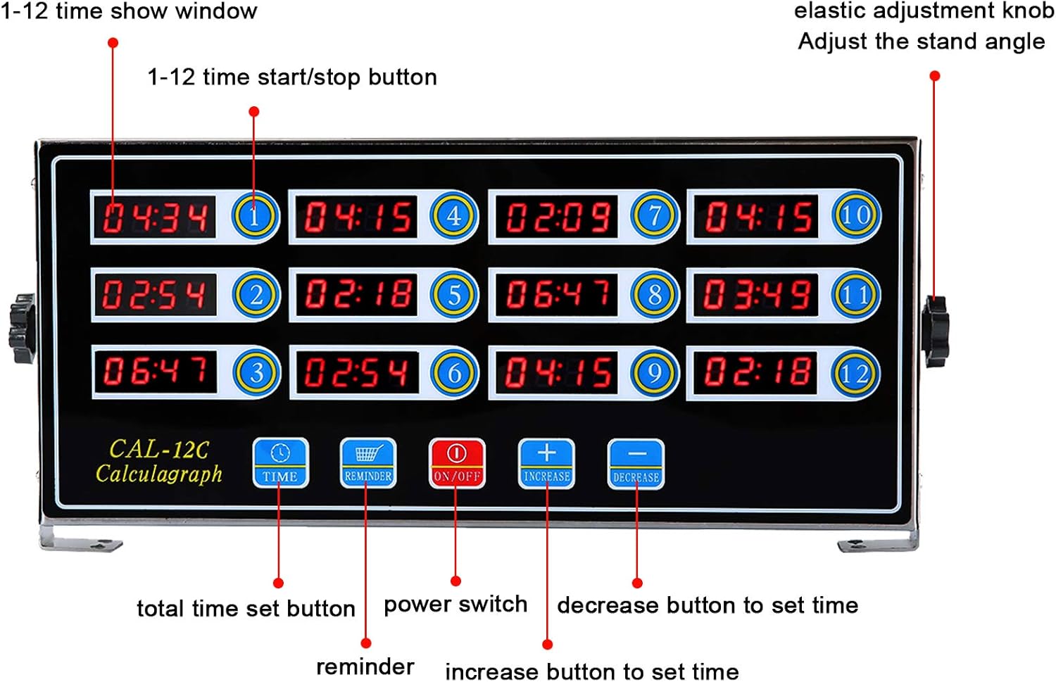 Kitchen Timers for Cooking, 12 Channel, Commercial Grade, Stainless Steel, LED Digital, Loud Alarm