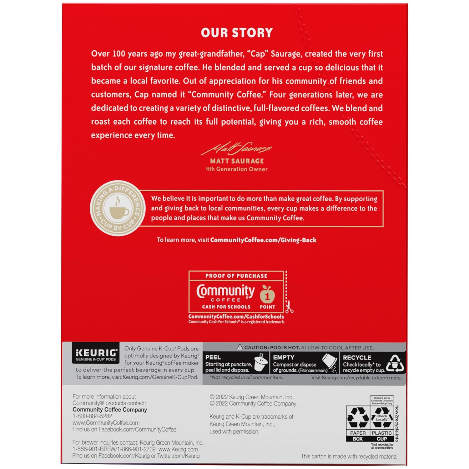 - Community Is Everything: From using responsibly-sourced coffee beans to programs that support military service members, local schools and more, Community Coffee gives back to our partners and local communities in every way we can