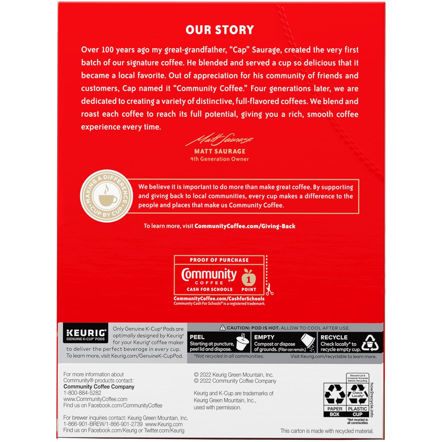 - Community Is Everything: From using responsibly-sourced coffee beans to programs that support military service members, local schools and more, Community Coffee gives back to our partners and local communities in every way we can