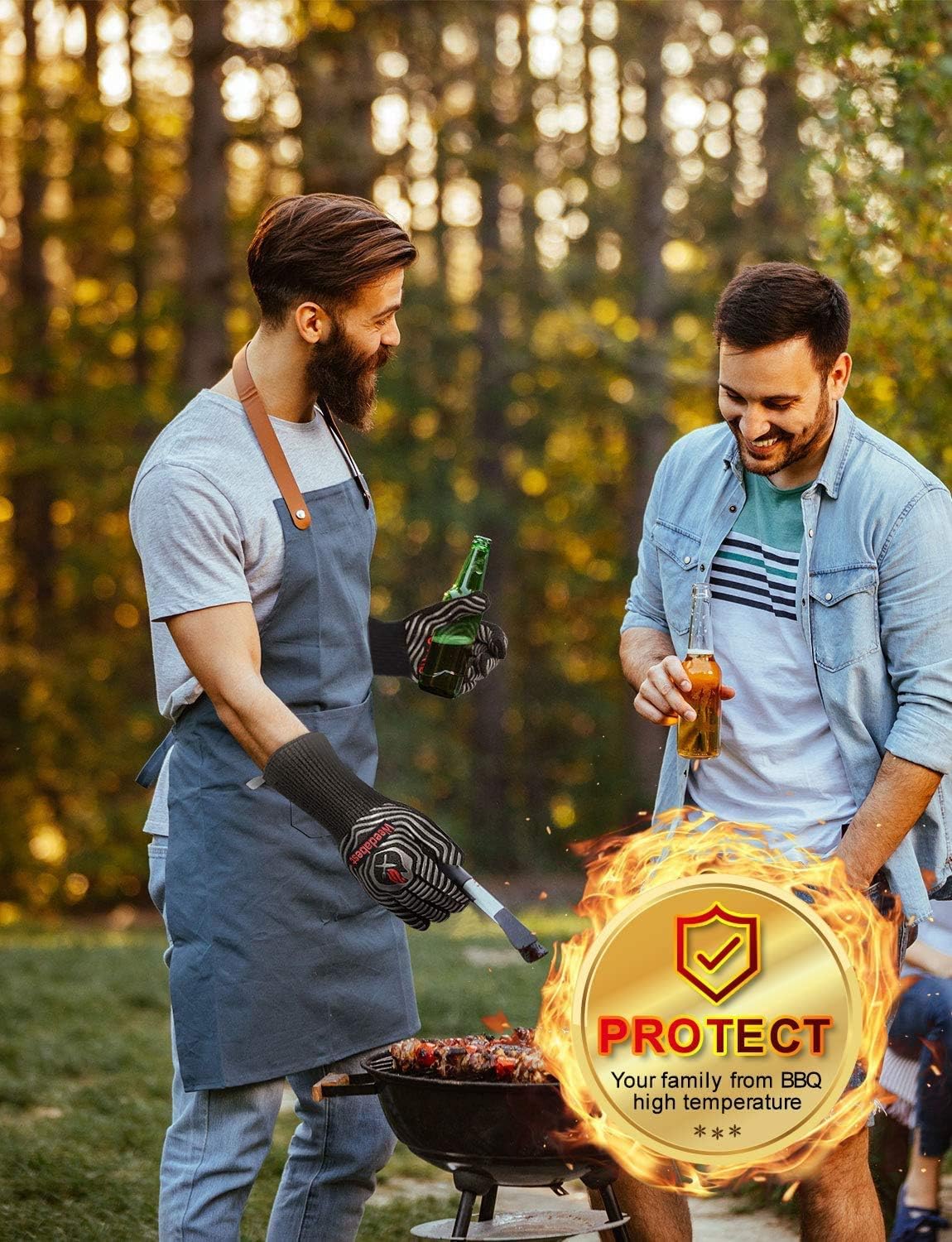 WEEDABEST Hot BBQ Gloves Heat Resistant Kitchen Oven Mitts Professional Long Heat Resistant Cooking Gloves for Grill,Grilling,Smoker,Barbeque,13.5 inch-Gray