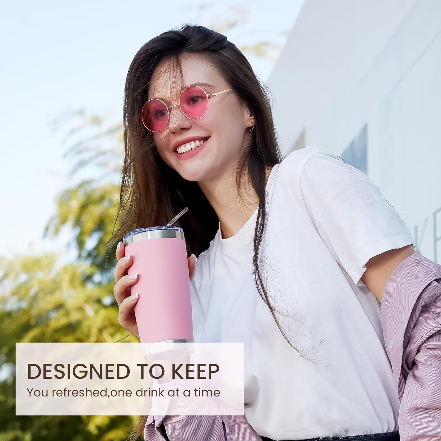 MEWAY 20oz Tumbler 4 Pack Double Wall Vacuum Insulated Travel Mug Bulk, Stainless Steel Tumblers with Lid and Straw, Durable Powder Coated Coffee Cups for Cold & Hot Drinks (Pink, 4)