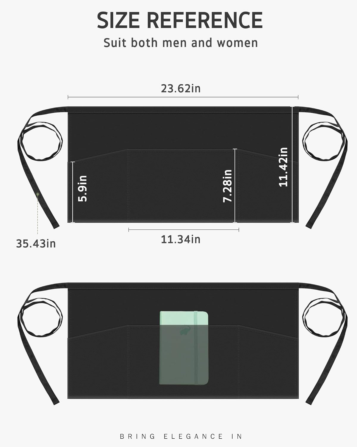 - Ample Storage - Designed with 3 front pockets, provides convenient storage for all your serving essentials. From pens and order pads to utensils and handheld devices, everything you need is within easy reach, allowing you to work efficiently and seamlessly.