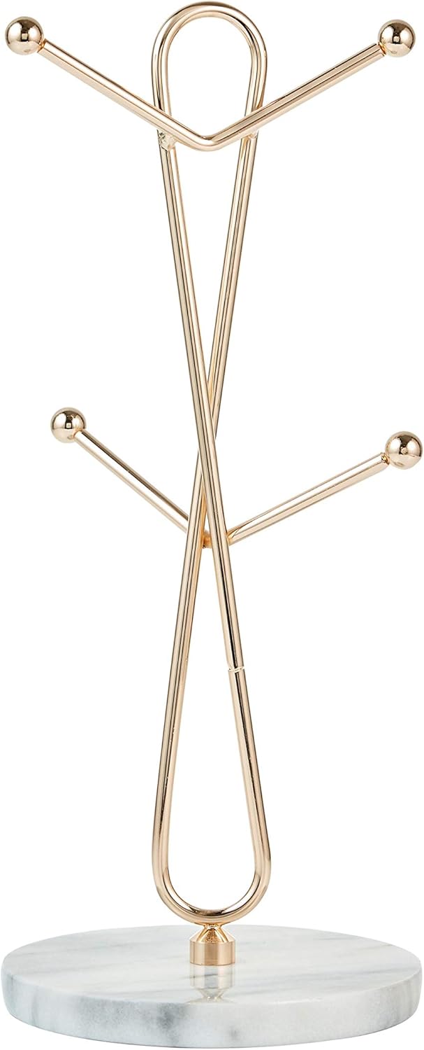 JEmarble Mug Holders with Copper Plated Standing - White Countertop Mug Tree, Coffee & Tea Cup Storage Rack, Coffee Counter Bar Accessory & Kitchen Organizer