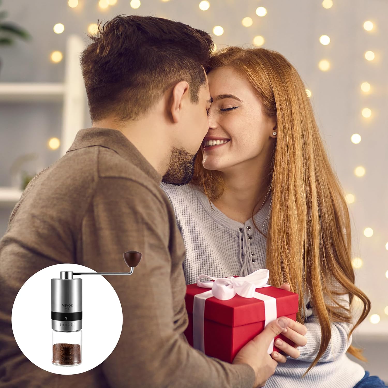 VEVOK CHEF Manual Coffee Grinder Stainless Steel Burr Grinder 6 External Adjustable Setting Vintage Hand Coffee Grinder Portable Hand Crank Conical Coffee Bean Grinder Mill for Home,Camping