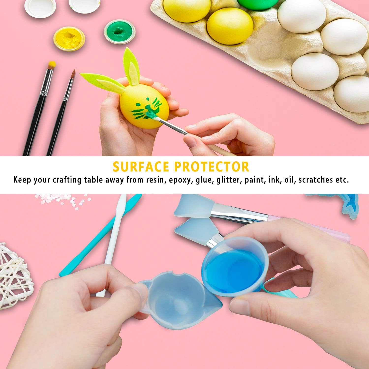 - SURFACE PROTECTOR - The countertop mat is waterproof, heat resistant, non slid, can protect your desk countertop against water, stains, discolorations, scratches, burn, grease and keep your crafting table away from resin, epoxy, glue, glitter, paint, ink, oil, scratches etc.