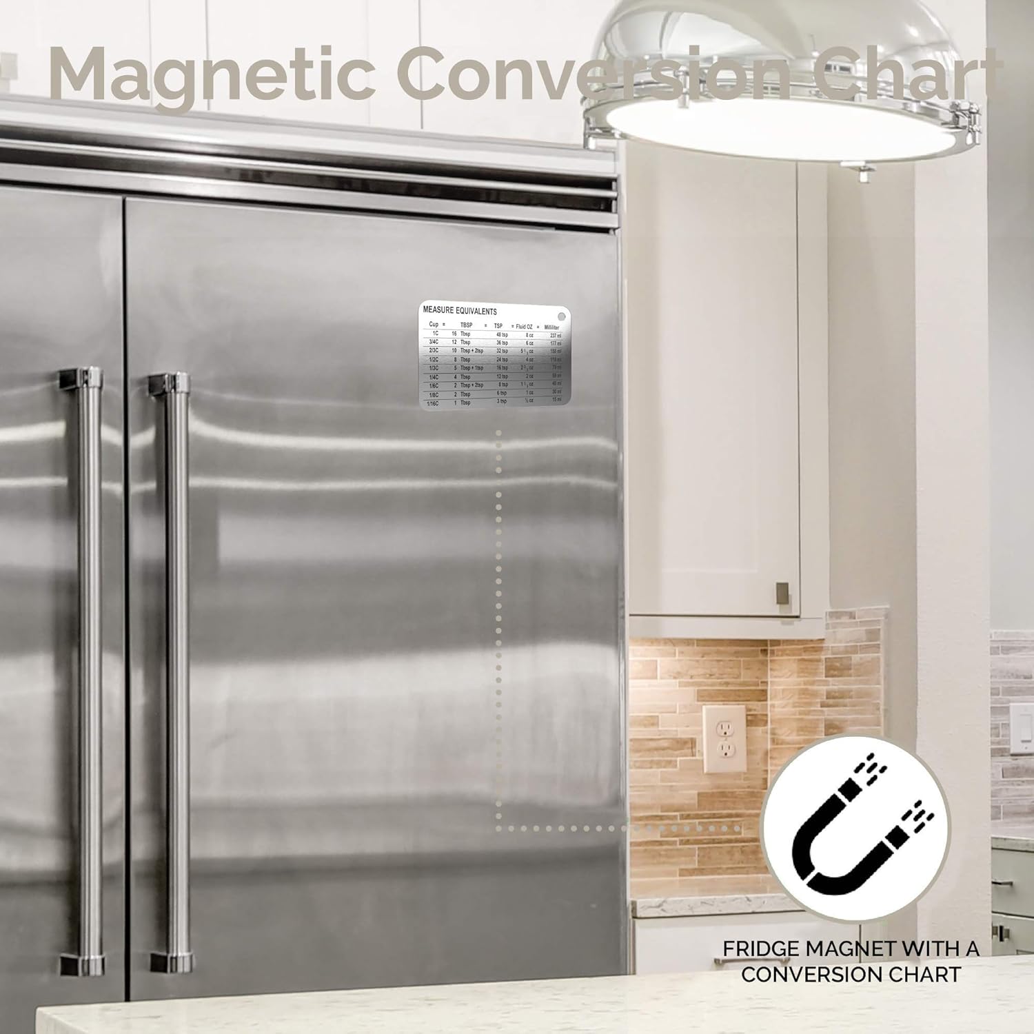 22-Piece Stainless Steel Measuring Cups and Spoons Set, Tad Dash Pinch Smidgen Drop Mini Measuring Spoons, Measuring Stick Leveler, Measurement Conversion Chart Fridge Magnet, (Charcoal)