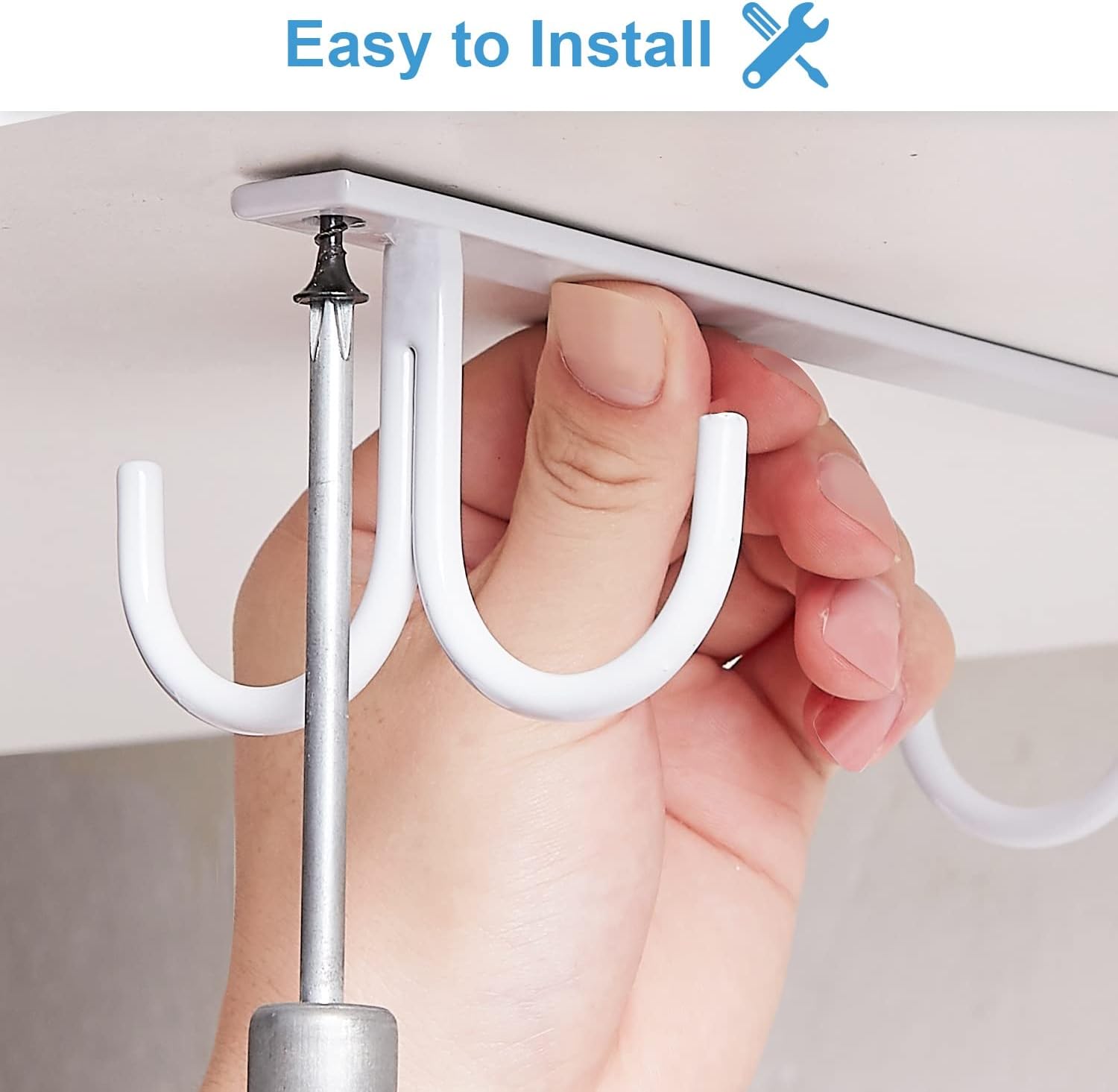 Mug Rack Under Cabinet - Coffee Cup Holder, 12 Mugs Hooks Under Shelf, Display Hanging Cups Drying Hook for Bar Kitchen Utensils White