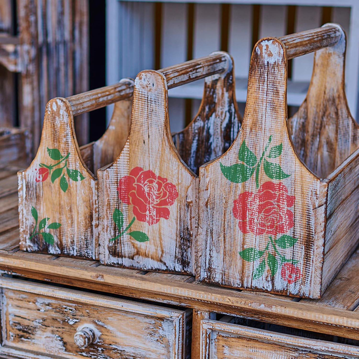 NAKLEO DIY Reusable Plastic Stencil - 21x30cm / 8.3” x 11.7” - Rose Flower Bloom - Art Craft Wall Painting Pattern Template Scrapbooking Decoupage - Fabric Furniture Wood
