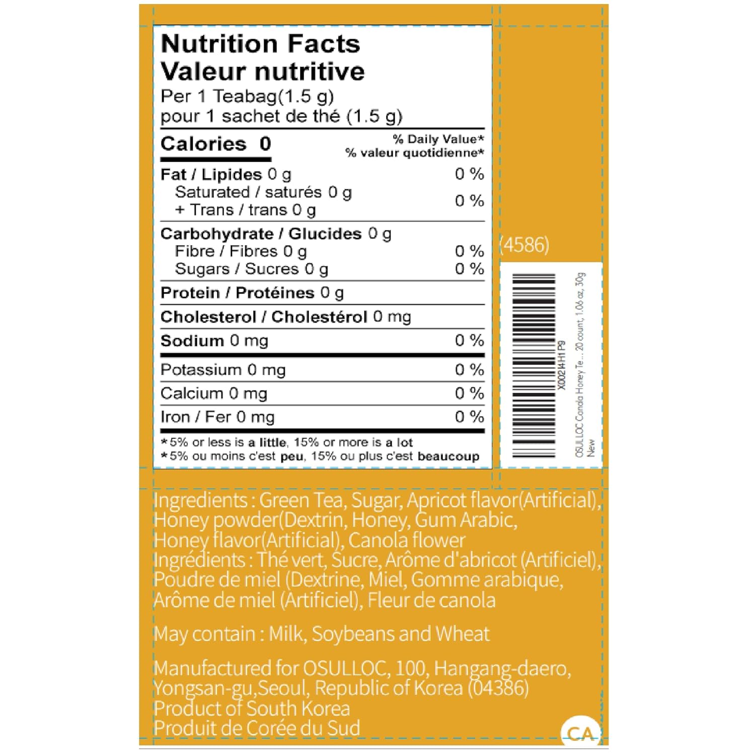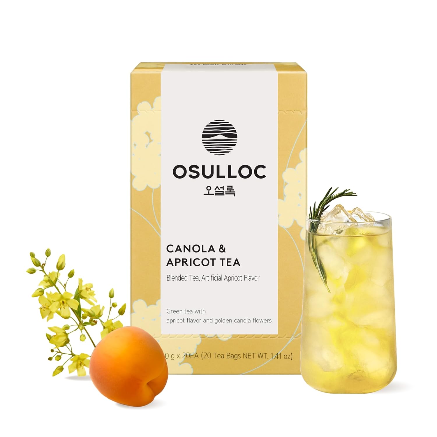 OSULLOC Canola & Apricot Tea (Aromatic Canola flower & Apricot), Premium Blended Tea from Jeju, Tea Bag Series 20 count