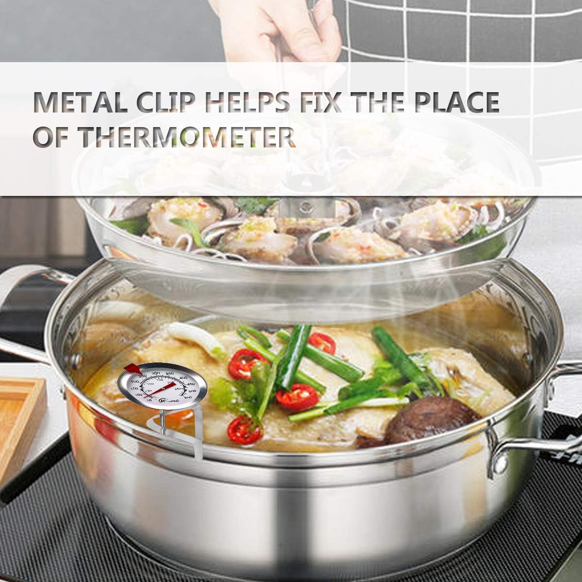 - DESIGN: The 2-inch large dial is easy to read, allowing you to observe the temperature of the ingredients in time. It can be used directly without batteries, and can accurately measure the temperature in the pot.
