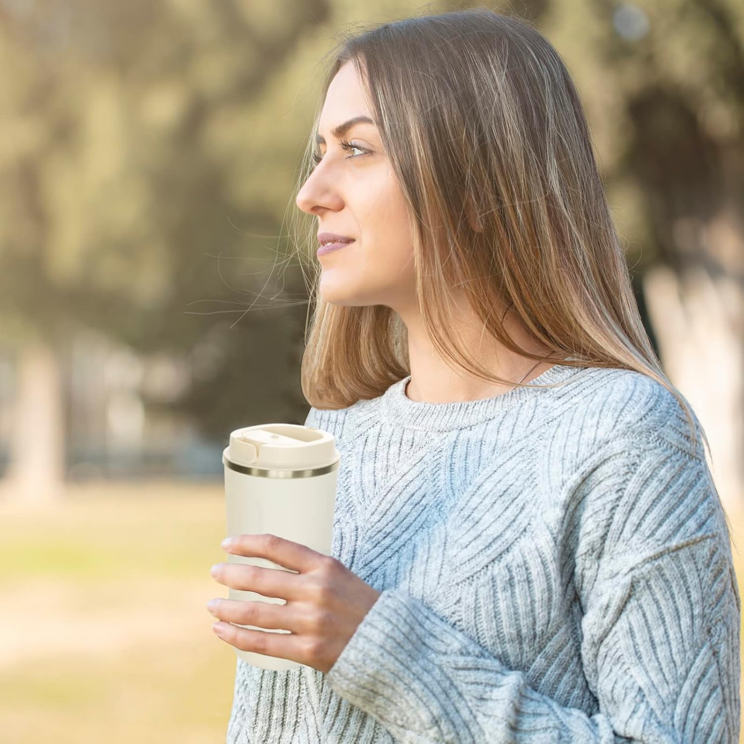 - 17oz Travel Coffee mug: With a superior powder coated finish, anti-slip, won't peel or fade, comfortable to touch. Which is make the coffee cup looks elegant and fashionable.