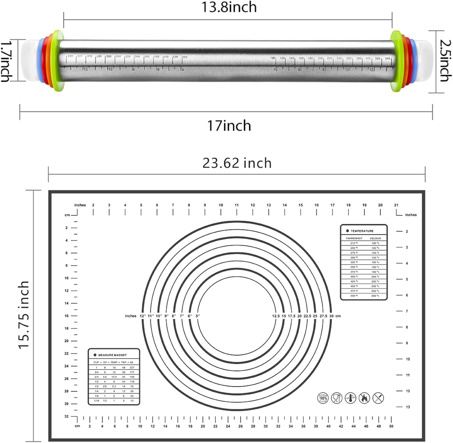 - Baking Comprehensive Matching SET: The measuring pastry mat is adopted, and the size of the baking mat is about 23.6 inches ×15.7 inches, which is very suitable. No matter how big the dough is, you are able to roll the dough easily. It is very easy to clean.