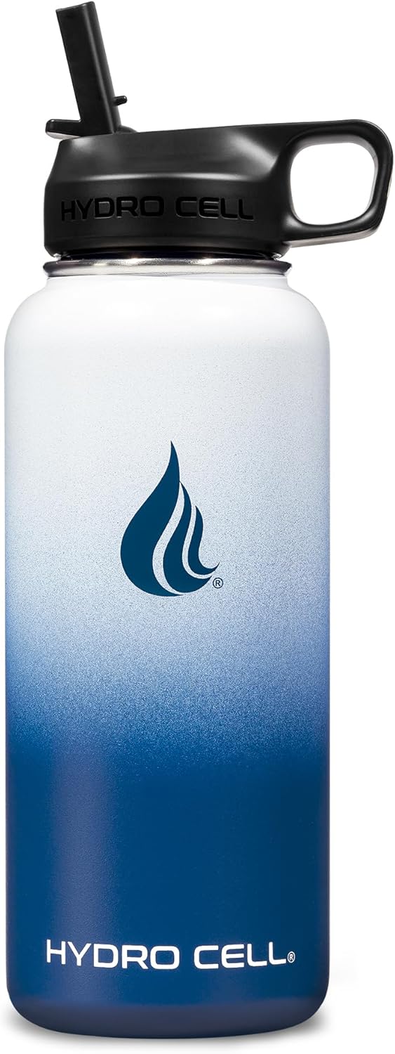 HYDRO CELL Stainless Steel Insulated Water Bottle with Straw - For Cold & Hot Drinks - Metal Vacuum Flask with Screw Cap and Modern Leakproof Sport Thermos for Adults (Navy/White 32oz)