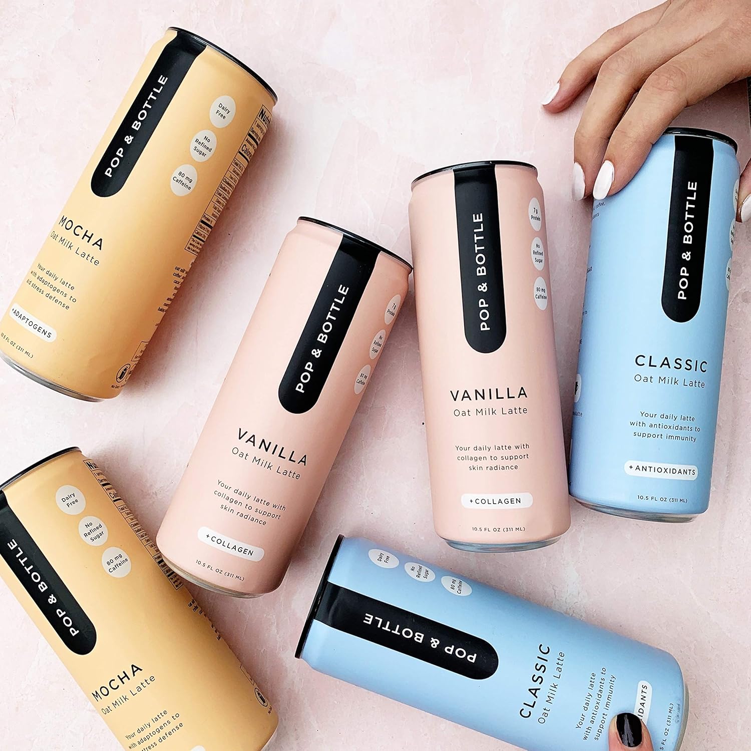 - CANNED COFFEE DRINKS - Pop and Bottle oat milk latte drinks are crafted to help jumpstart your day with organic ingredients & supplements to keep you going while at home or on the go